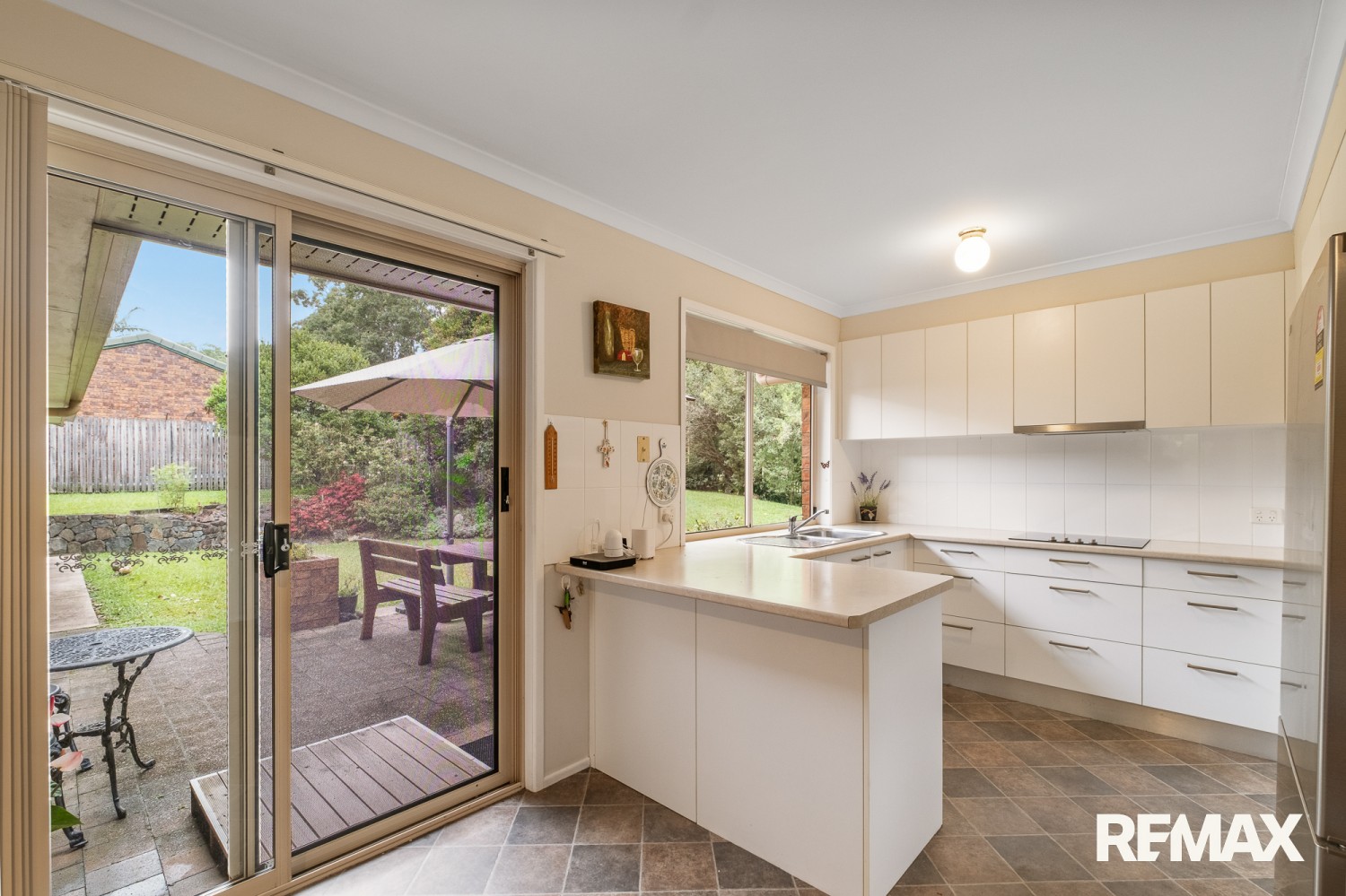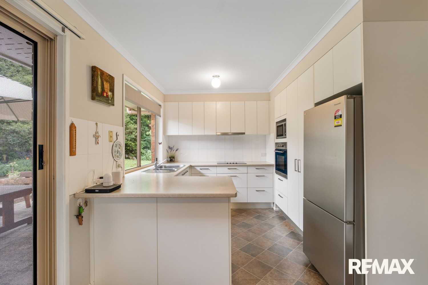 * Practical kitchen overlooking the backyard