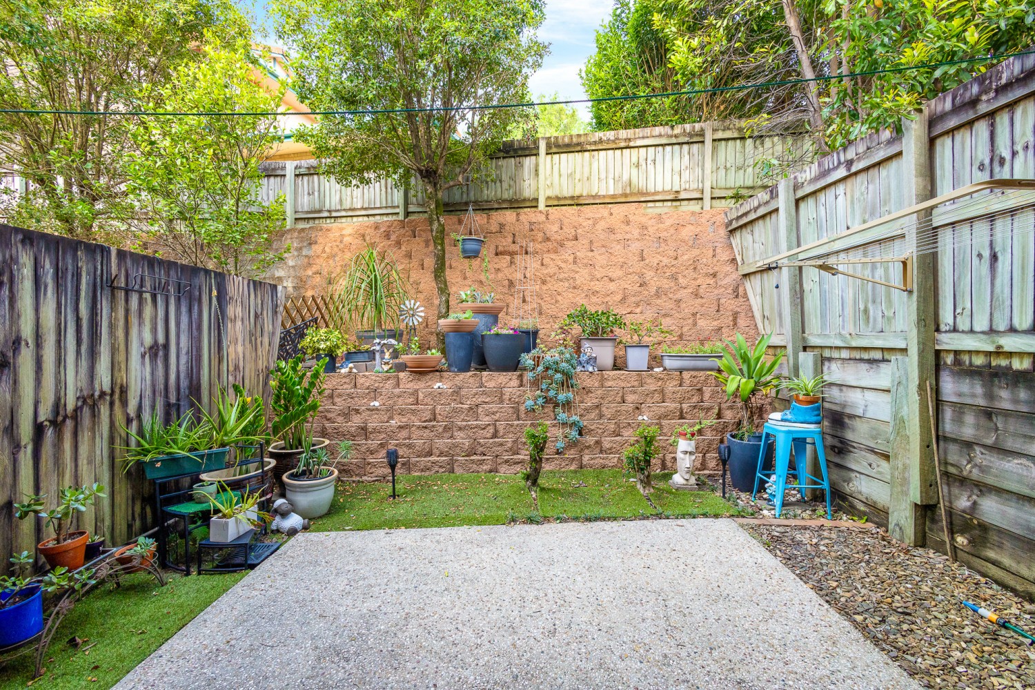 * Private rear courtyard with terraced garden beds