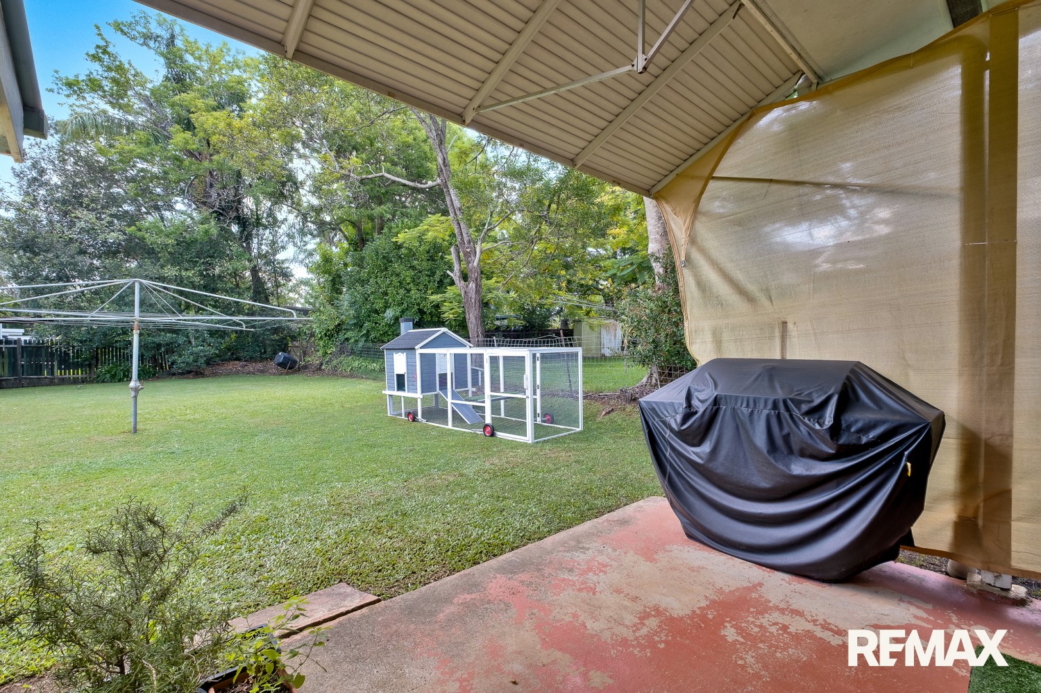 Stepping outdoors reveals what truly elevates the property. A covered patio overlooks the backyard, while wide stretches of lawn extend across the block beneath mature shade trees and established greenery. It is outdoor space with genuine purpose, suited to gardening, pets, family gatherings or simply enjoying the openness and flexibility that larger residential allotments continue to offer.