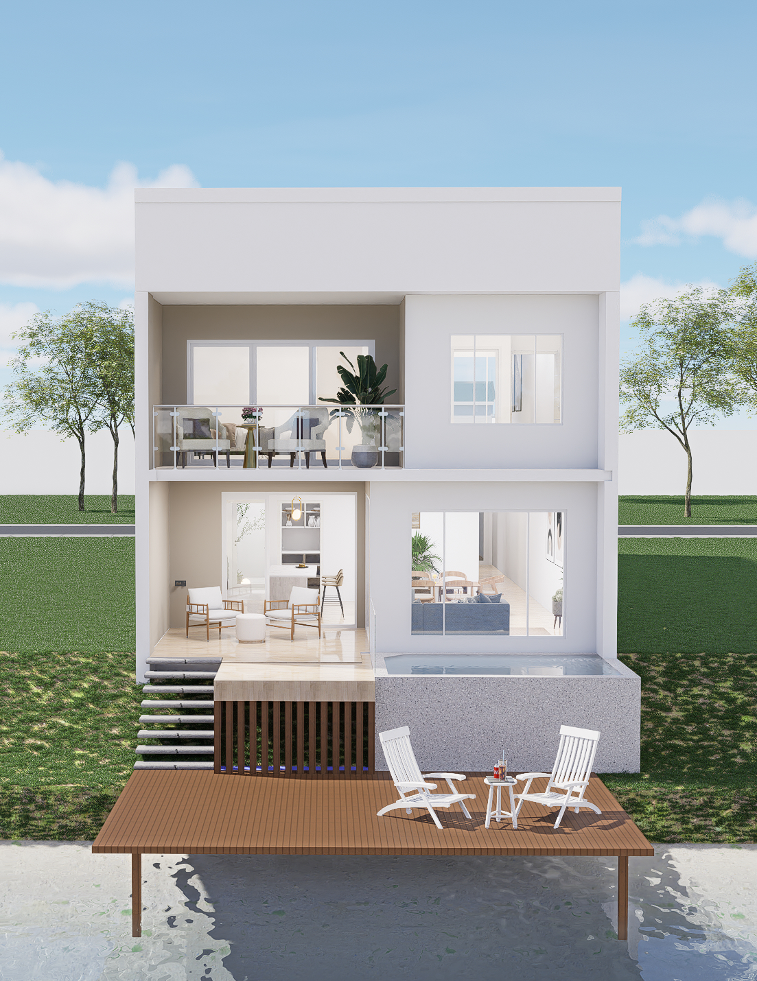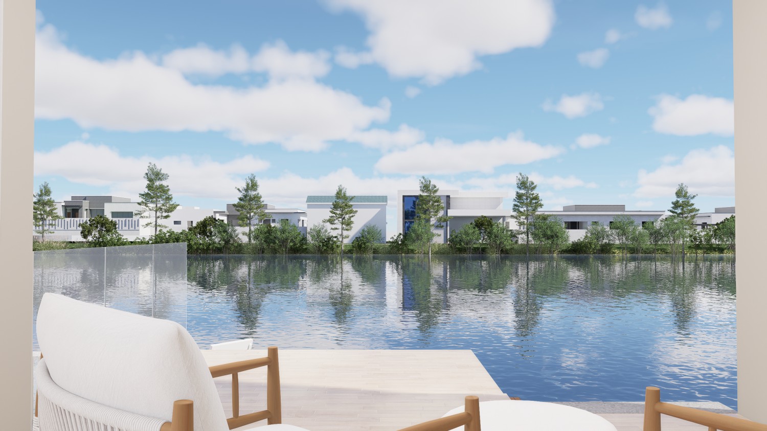 - Open-plan living and dining flowing to alfresco, pool, and waterfront deck
