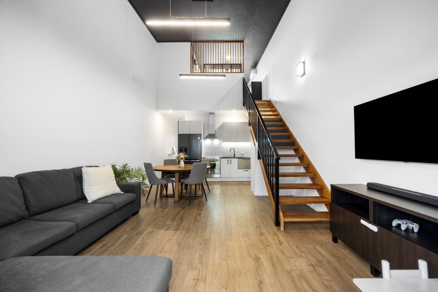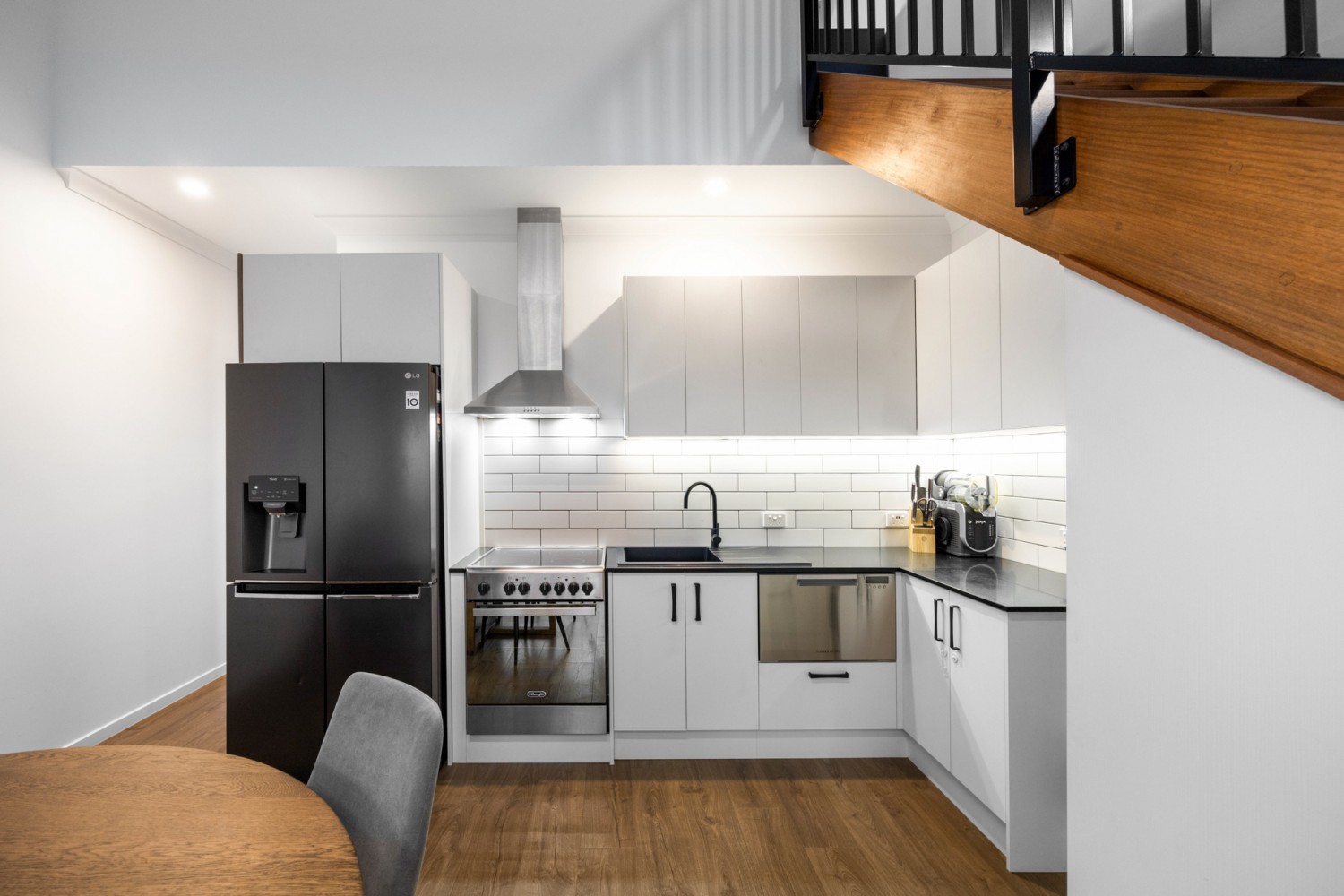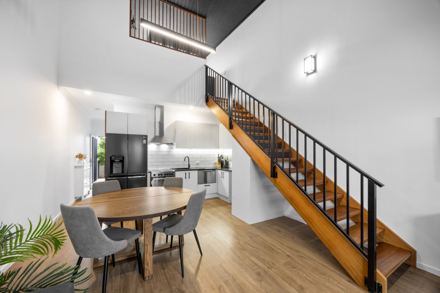 The staircase leads upstairs to a private master bedroom featuring walk in robe, ensuite and air conditioning. While the second bedroom downstairs offers versatility as a media room, study or guest retreat, this is serviced by the separate toilet and shower located beside the separate laundry.