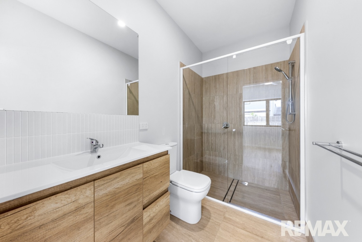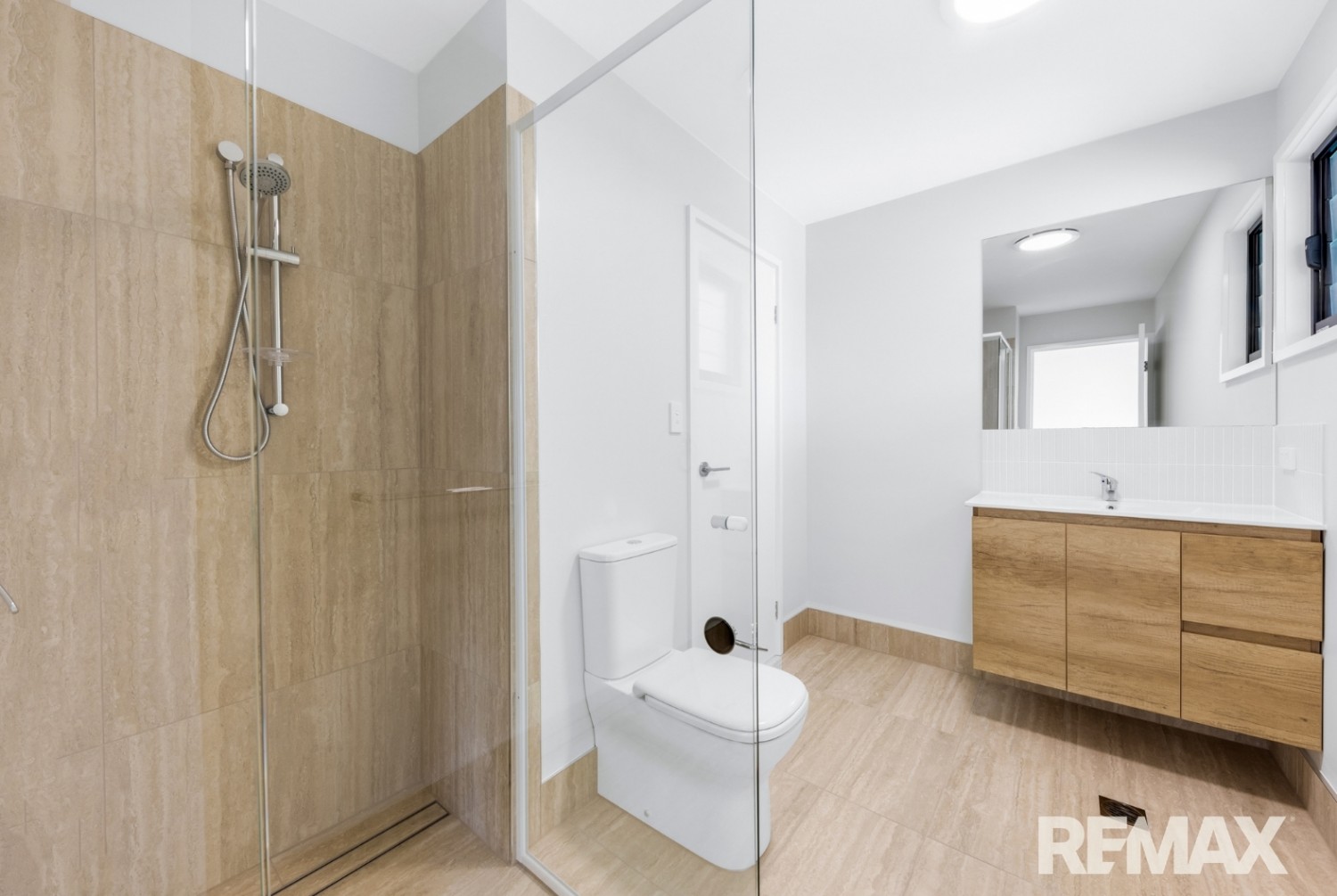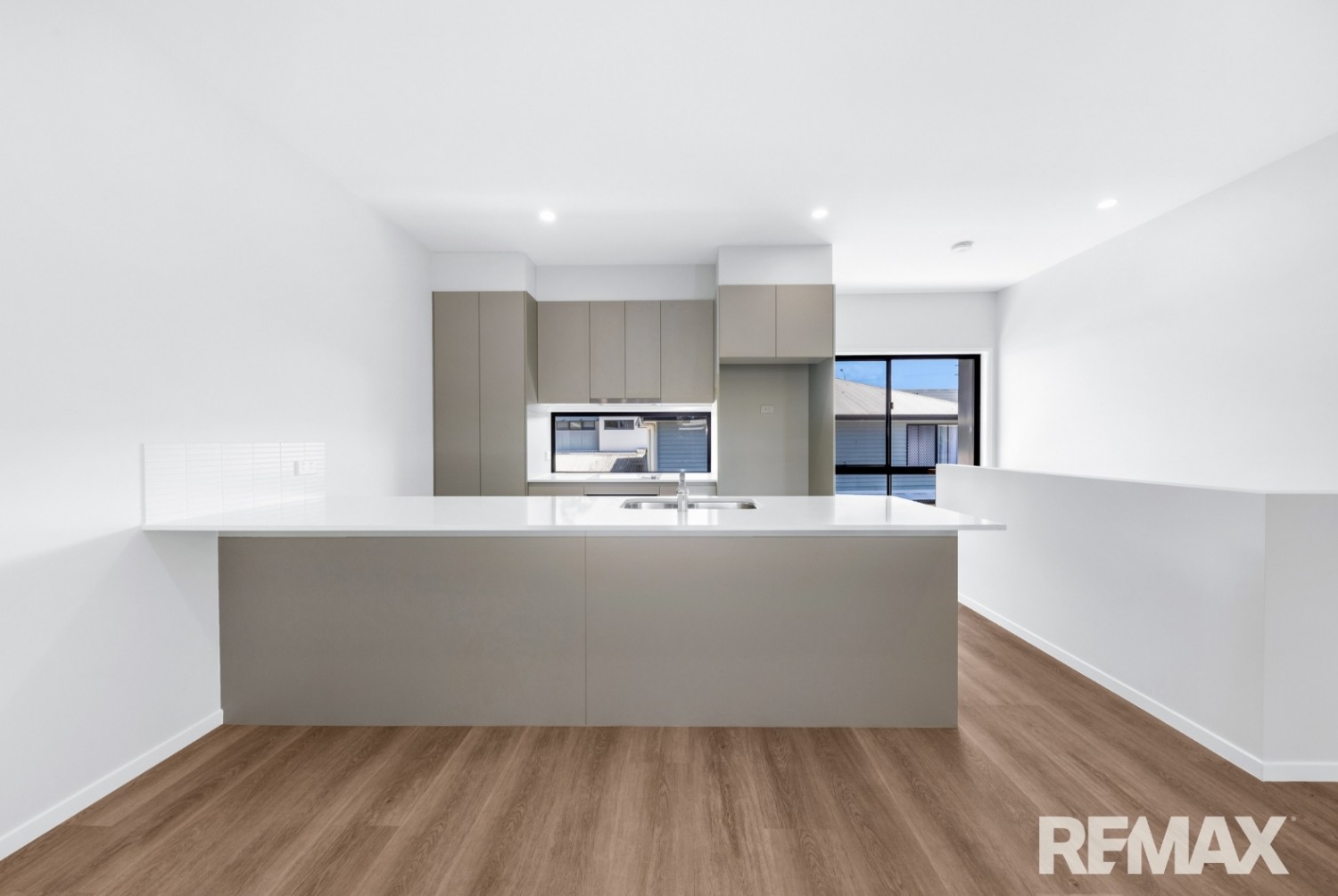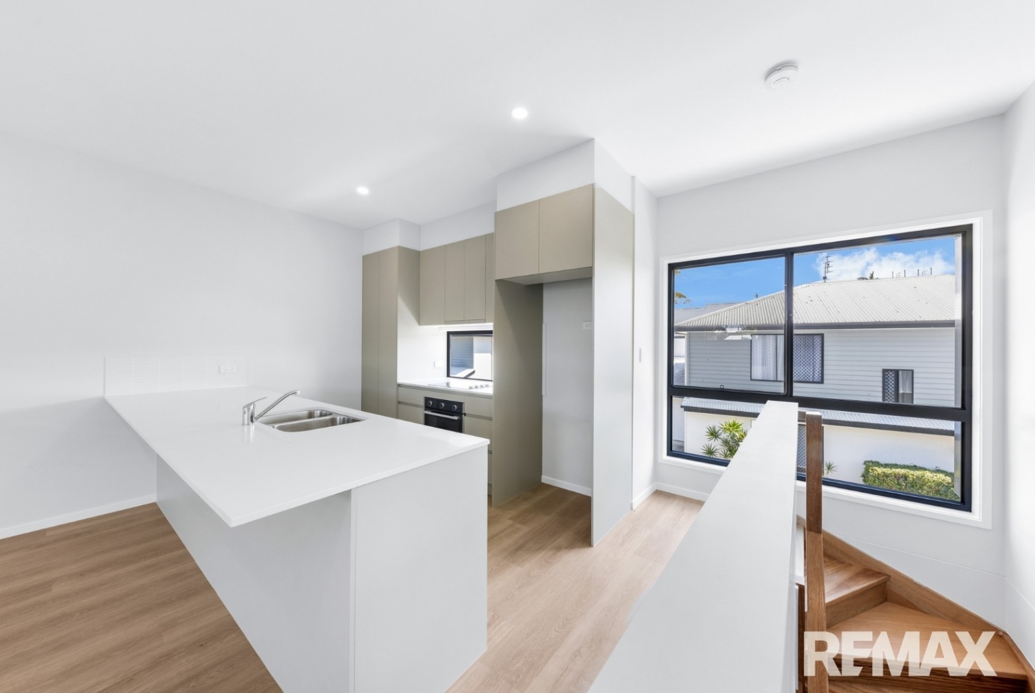 Upstairs, the light-filled open-plan living and dining area flows seamlessly onto a generous undercover balcony, perfect for morning coffee, evening drinks, or relaxed entertaining. The modern kitchen features a smart two-tone design, generous bench space, ample storage, and a dishwasher for everyday convenience.