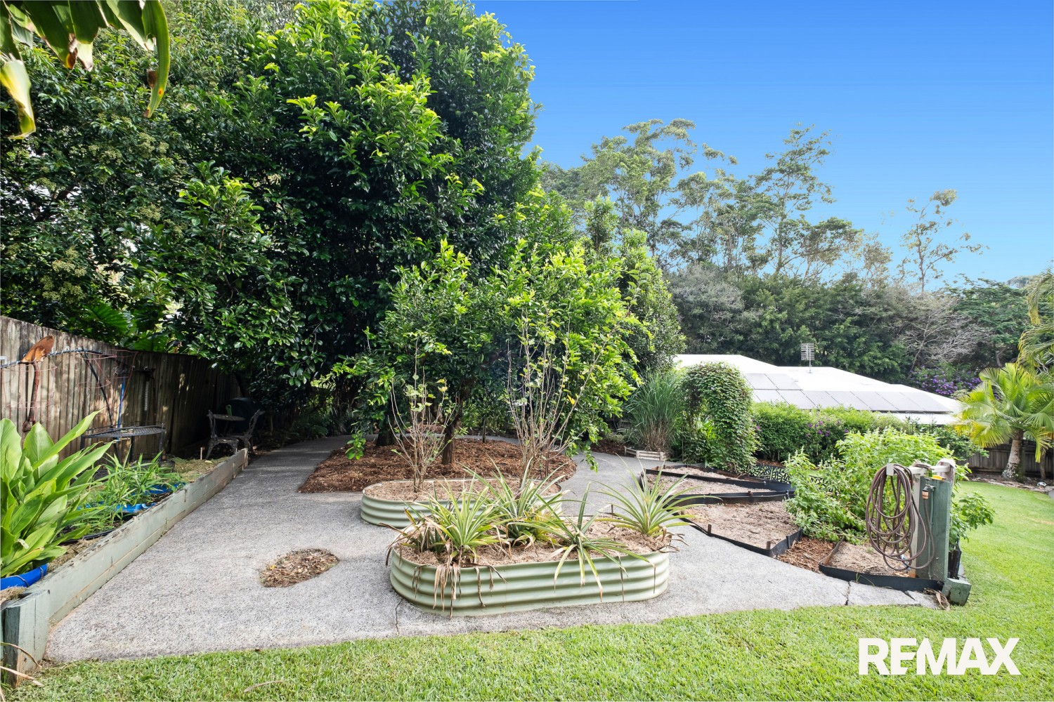 - Established gardens, fruit trees, and thriving veggie patch
