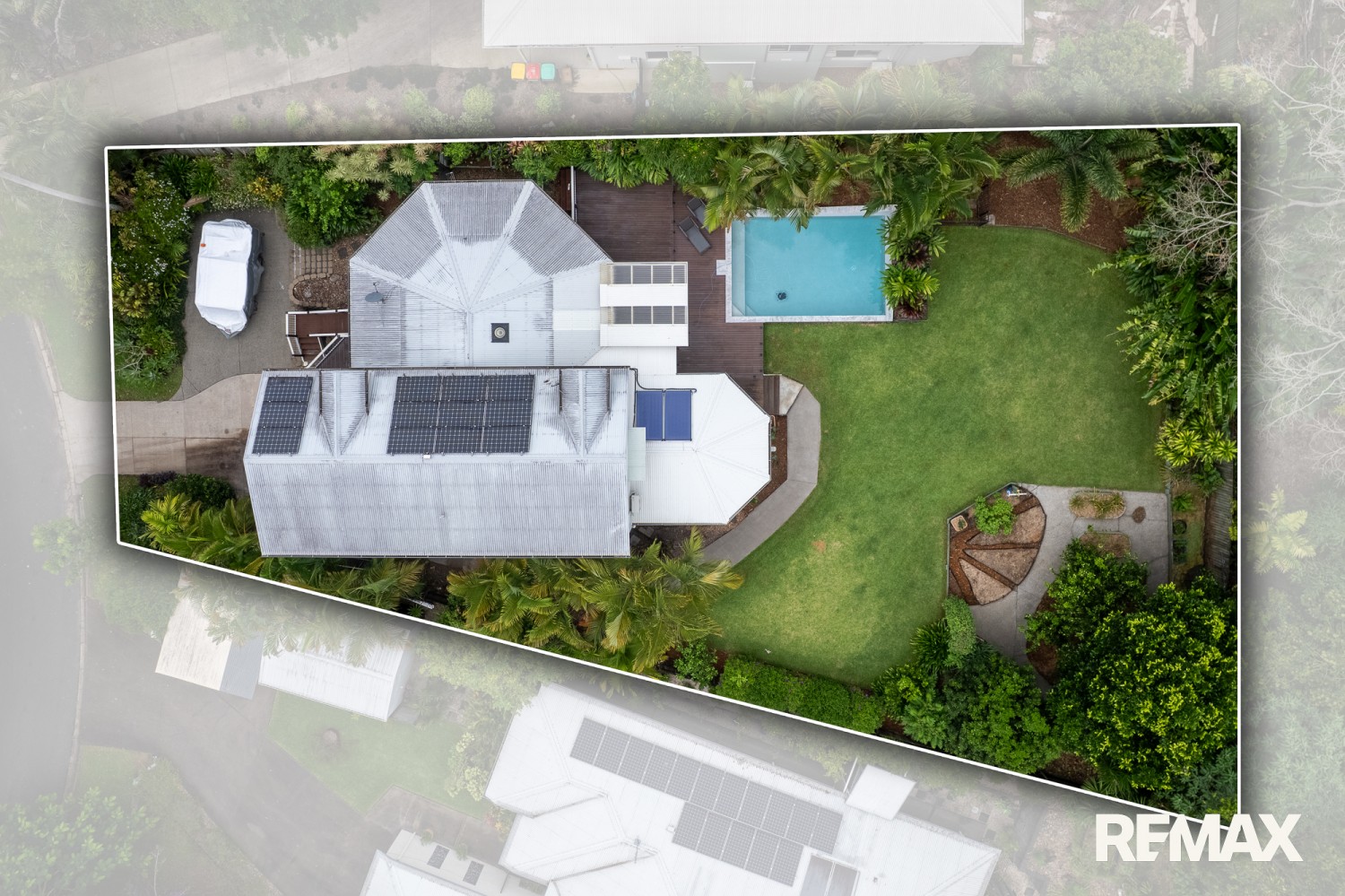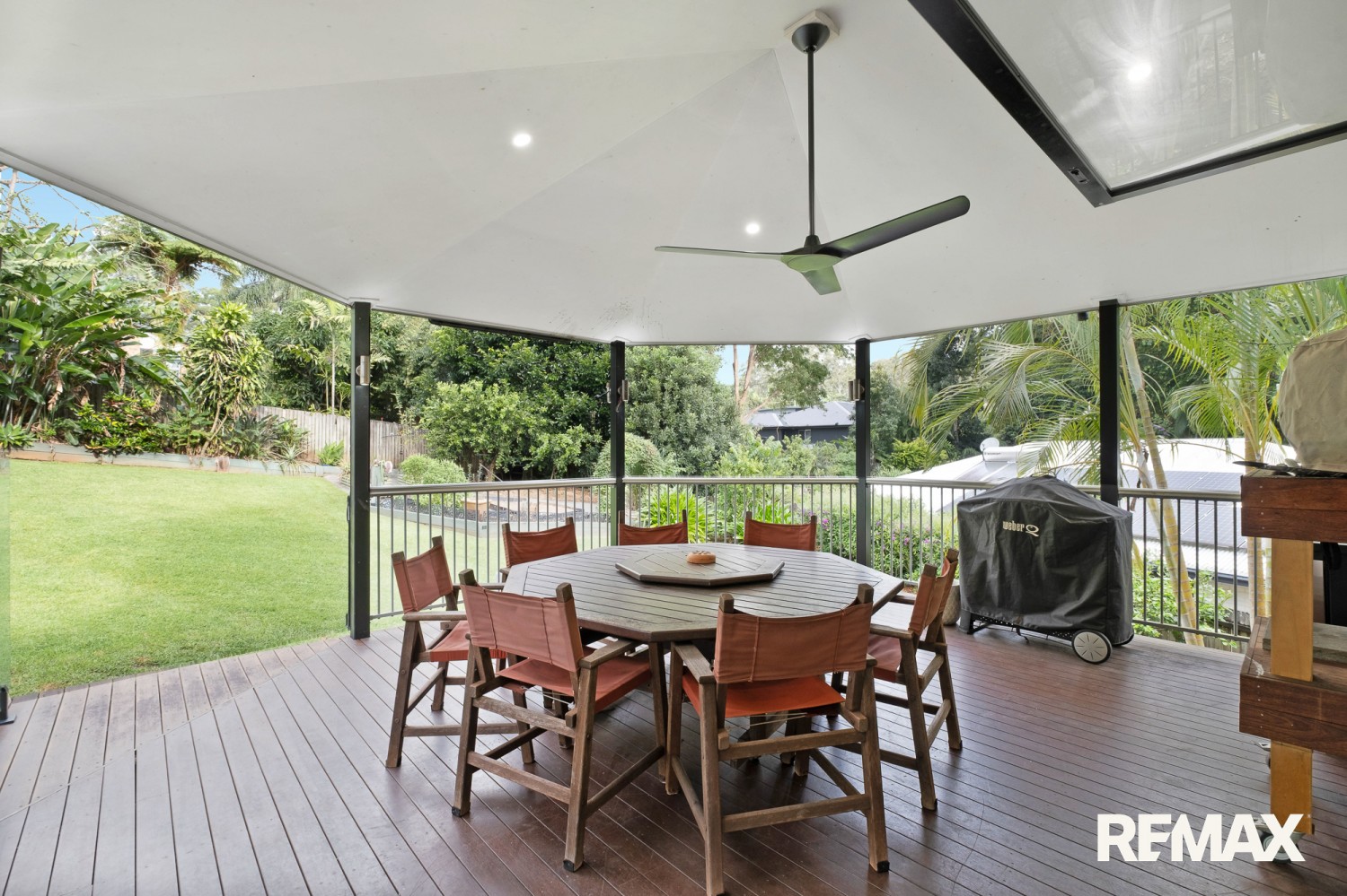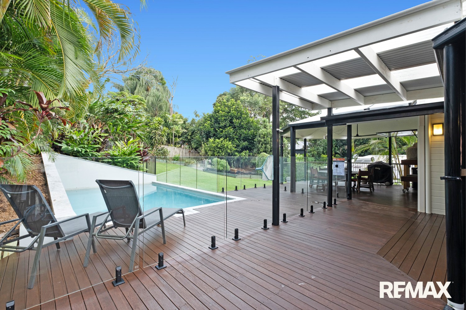- Expansive covered entertaining deck overlooking the pool