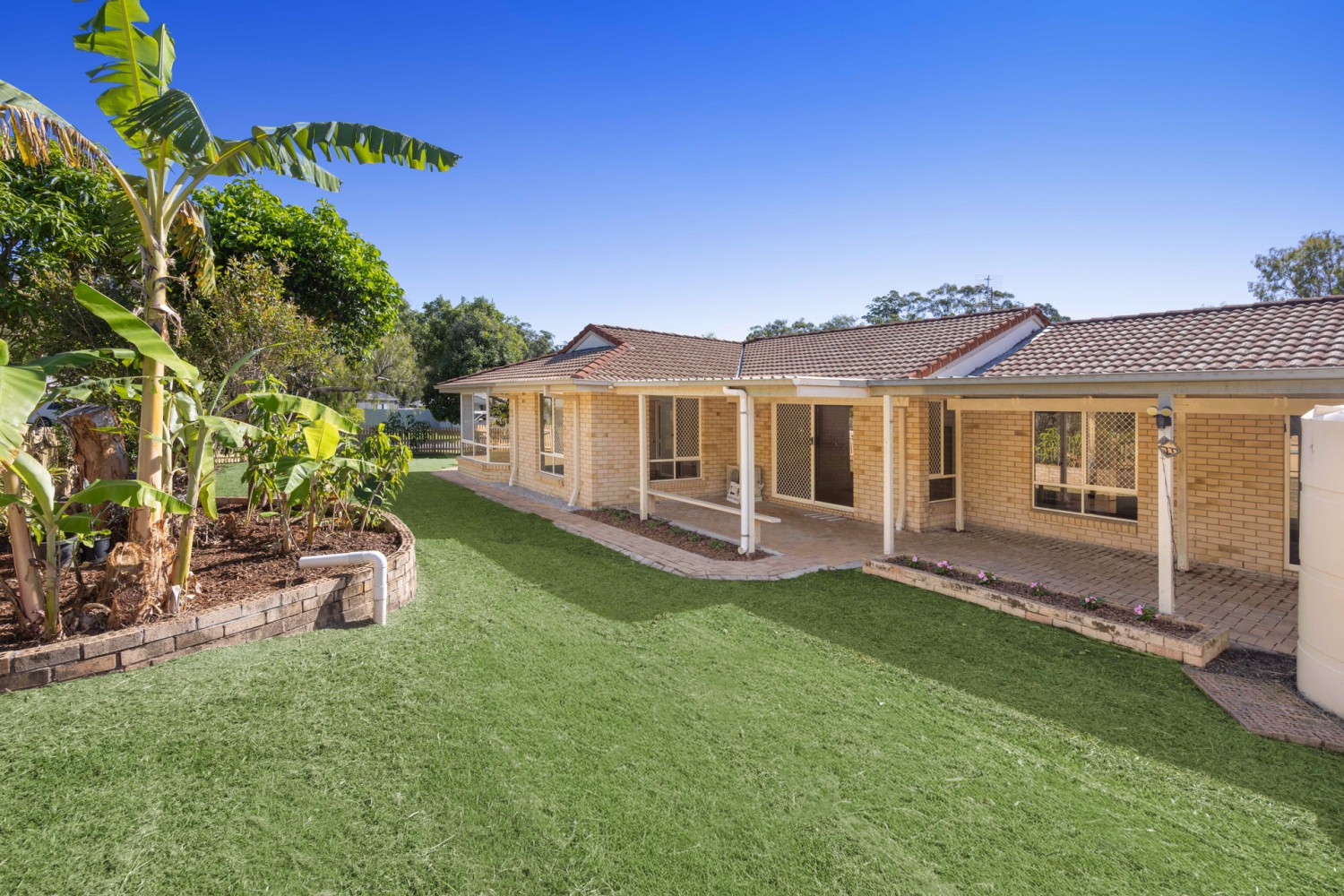 With a practical layout the main bedroom is positioned at the back of the home and offers a walk-in robe, ensuite and aircon. All the remaining bedrooms are well-proportioned and fitted with ceiling fans, ensuring comfort throughout the year.
