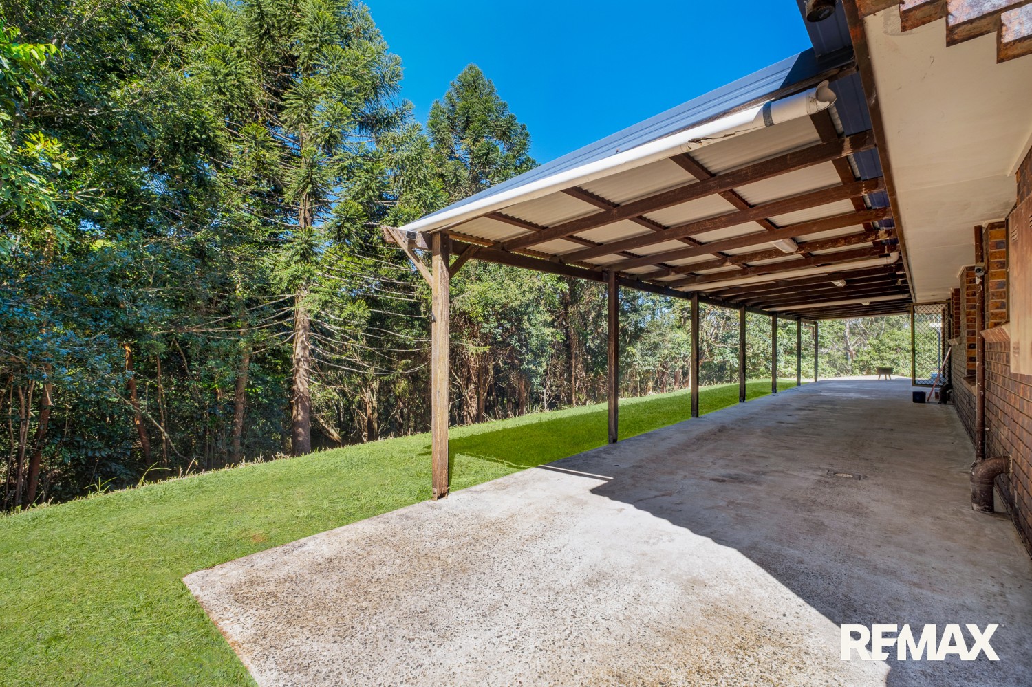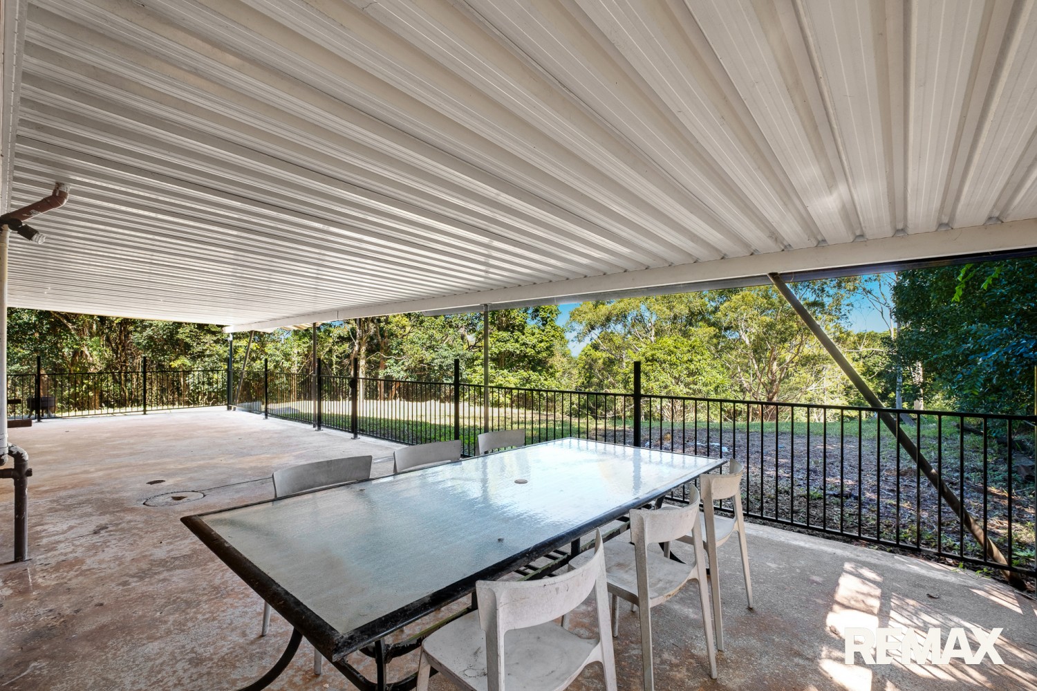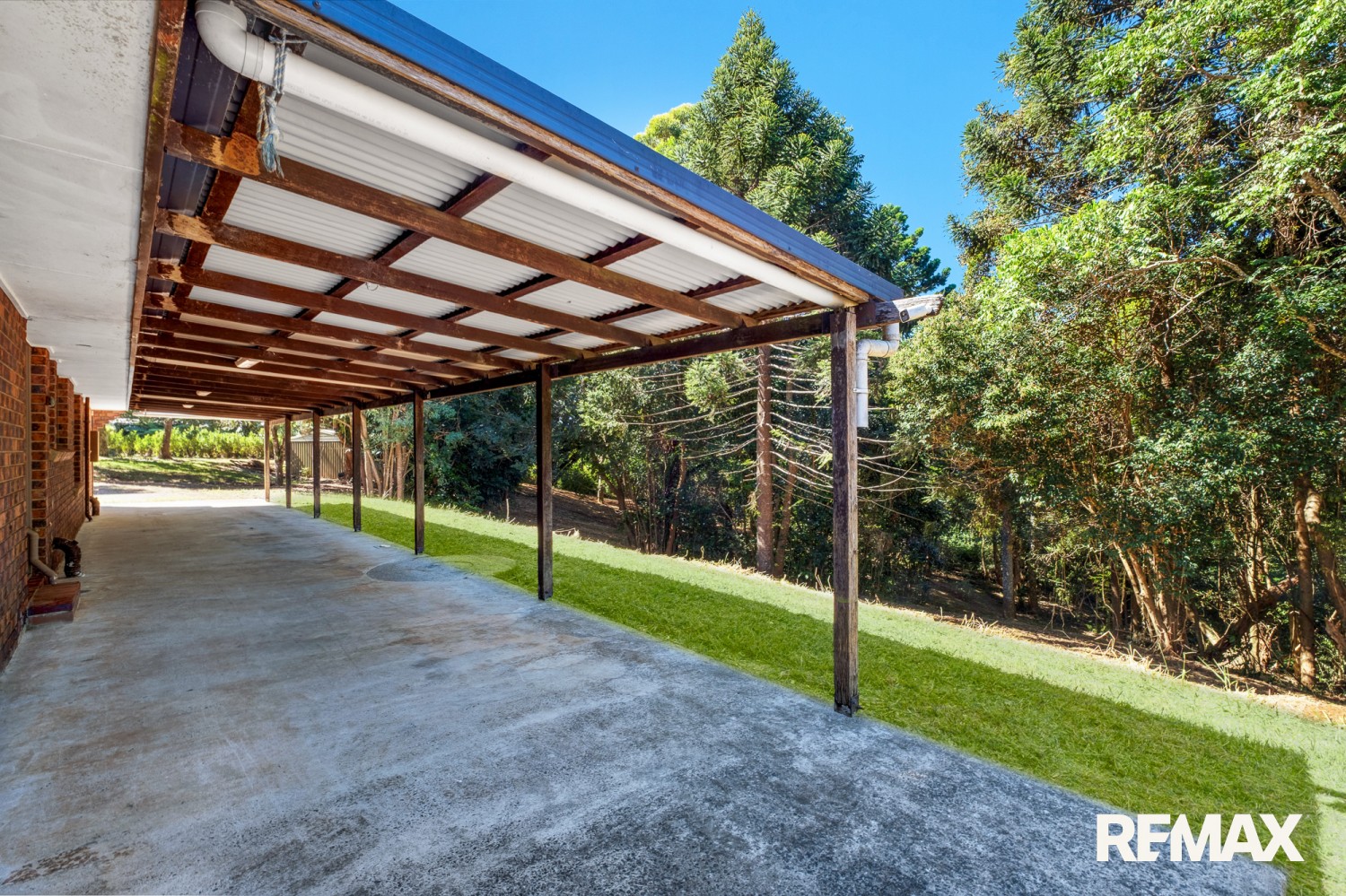 Outdoor living is a key strength of the property. A large covered patio extends from the rear of the home, creating a sheltered space for entertaining or relaxing while overlooking the surrounding land. The block itself combines usable areas with established vegetation, delivering both functionality and natural privacy, while the elevated position enhances airflow, outlook and overall appeal.