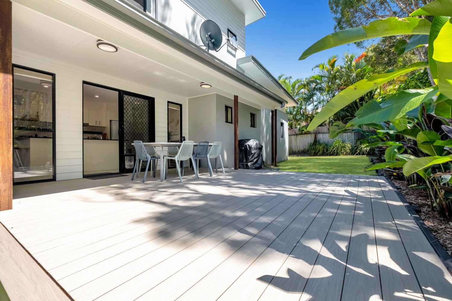 - open plan living and dining area with access via sliding doors to the outdoor decking area,