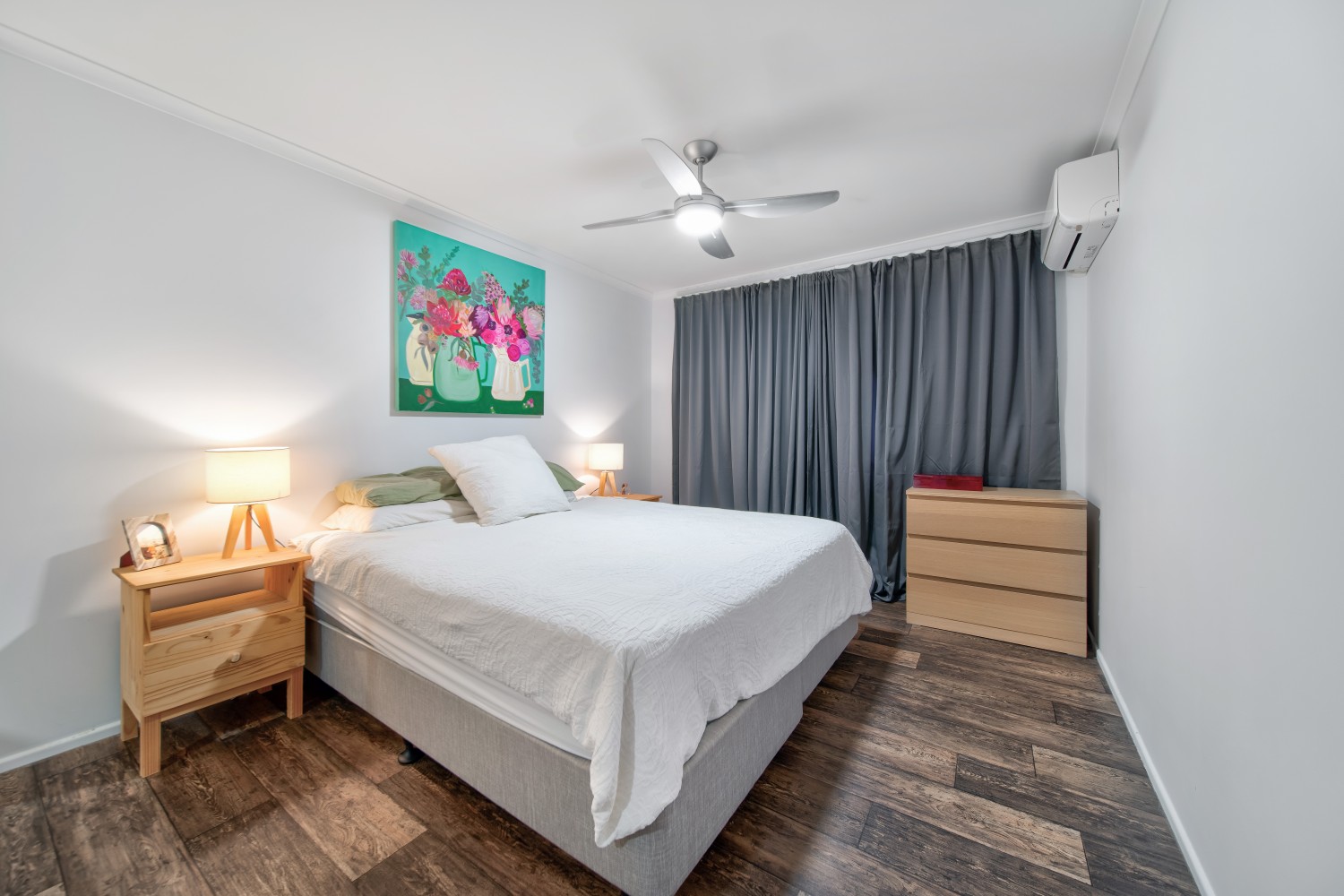 The well-appointed kitchen offers ample bench space and storage, featuring a gas oven and cooktop to suit everyday cooking. Both bedrooms are thoughtfully designed with built-in wardrobes, and split system air conditioning, while the oversized main bedroom easily accommodates a king-sized suite.