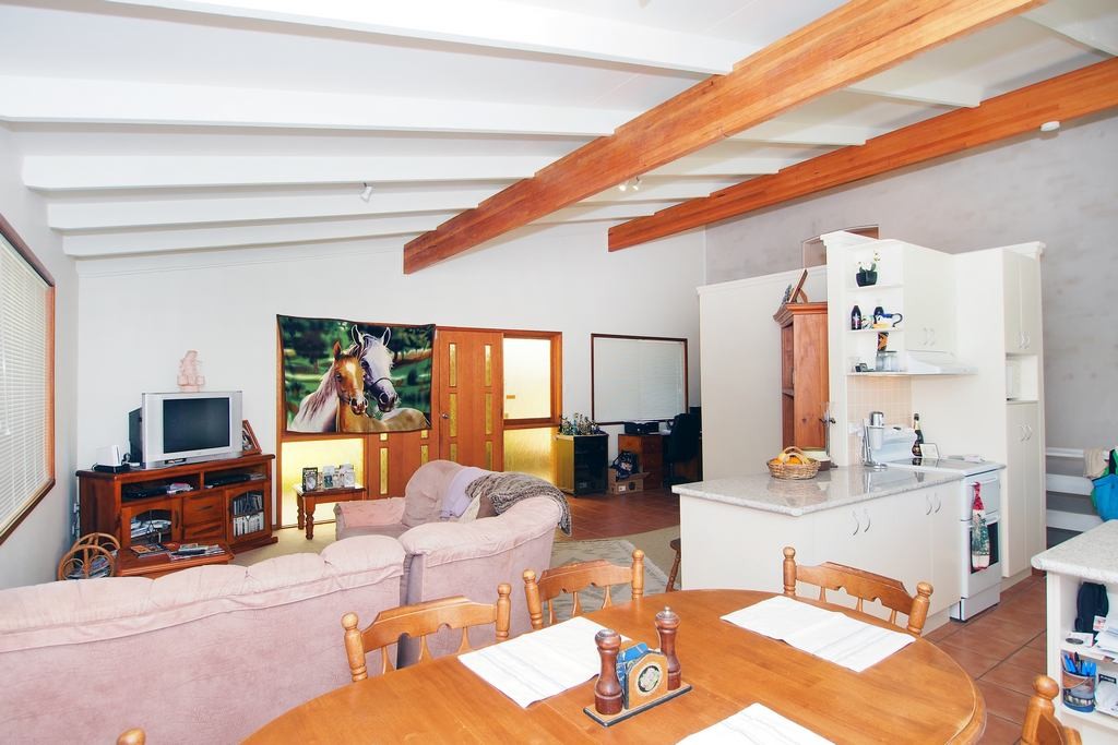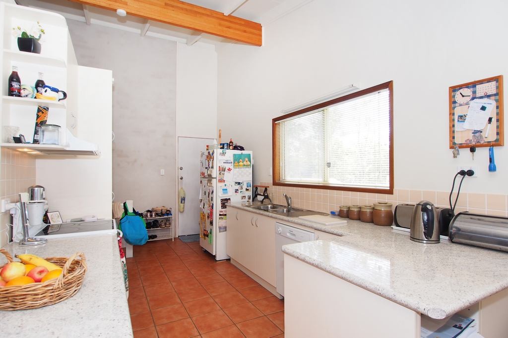 With high raked ceilings in the air conditioned living area, the interior of the home feels roomy and light and includes a spacious modern kitchen with dishwasher and loads of extra storage space.