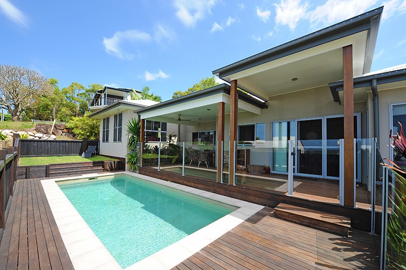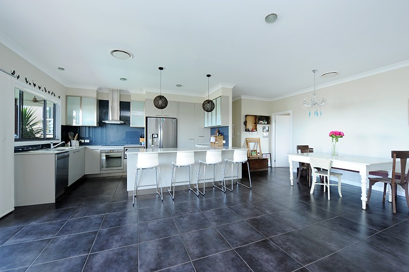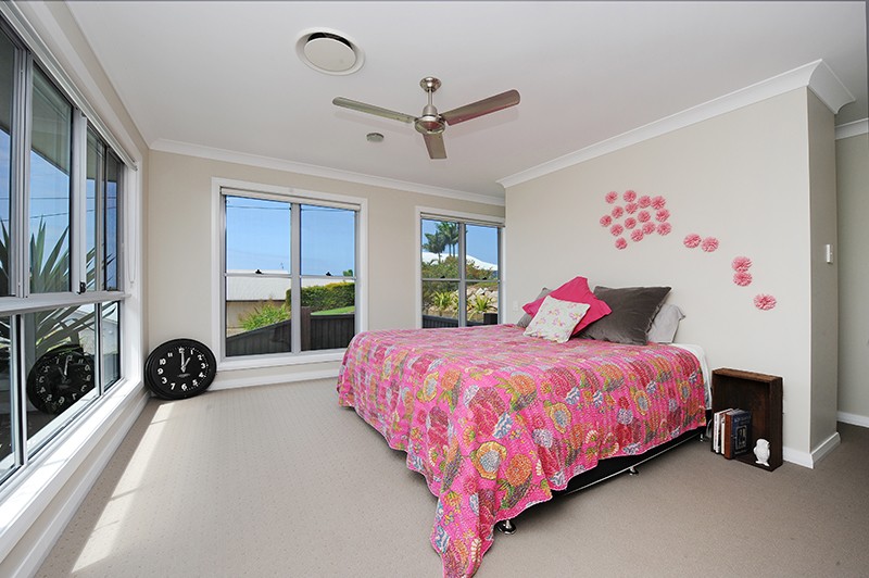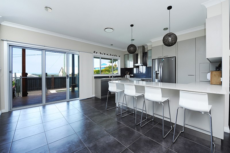 The open plan family room enjoys wonderful views to Mount Coolum and the coast with a large separate media room ideal for movie nights and providing some respite for mum and dad away from the kids. The kitchen is gorgeous with plenty of bench and storage space including a large pantry. There are electric cooking appliances, plumbed in fridge space and a dishwasher.